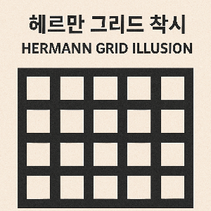 - 헤르만 그리드 착시 : 흰 선 교차점에 회색 점이 보이지만, 실제로는 없습니다. 주변 대비로 인한 착시입니다.
